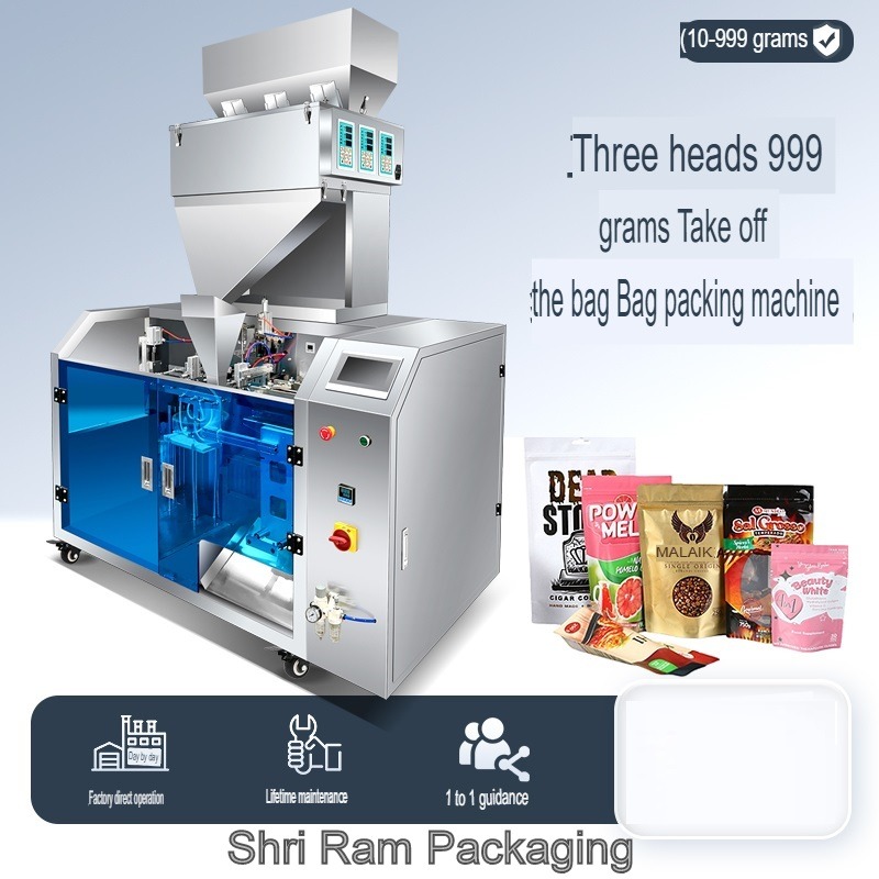 AUTOMATIC 3 HEAD GRANULE PICK-FILL-SEAL (PFS) PACKAGING MACHINE for PRE-MADE POUCHES is an industrial machine used to automatically pick a premade pouch, fill granule products, and seal the pouch in one continuous process. It is commonly used for food, seeds, spices, grains, snacks, and chemical granules packaging.Food Products Granule PFS machines are used for: Rice Pulses Sugar Tea Coffee beans Dry fruits Namkeen Agriculture Seeds Fertilizer granules Industrial Plastic granules Chemical granules