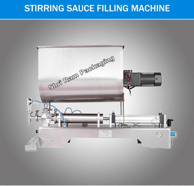 Paste Filling Machine With Stirrer Paste Filling Machine (100-1000ML ) equipped with motorised stirrer and large container hopper (40LTR ) which specifically suits for filling items like, gravy, pickles, sauces, curry with vegetable pieces or any thick liquid with semi solid particles. Filling Accuracy upto 10g