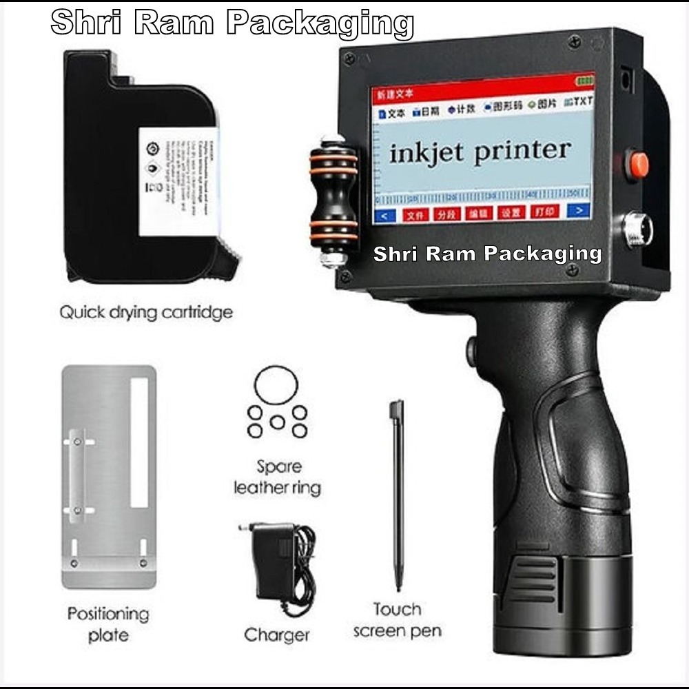 SHRI RAM PACKAGING PORTABLE HANDHELD INKJET PRINTER COMES WITH 50.8 MM FONT HEIGHT PRINTING CAPACITY THIS LARGE CHARACTER INKJET PRINTER HAVE 25.4MM 2 HEAD CAN PRINT 50.8MM FONT HEIGHT .Handheld batch expiry date coding machine. Thermal Inkjet-Cortex A9 Quard-Core CPU. 600 DPI High Resolution Inkjet Coding Print / Removable Battery.2000MAH Printing dot matrix numbers, dates, times, QR Code, text, graphics, barcode. Printing single and multi-line contents, maximum arrival 8 lines. Adjustable font size and type. Print up to not limit character on one line. Easy operation, free maintenance. Only need press-to-Print. 50.8 mm height head you can print 25 line in 2mm font 6mm font 8 line 50 mm size single line large size